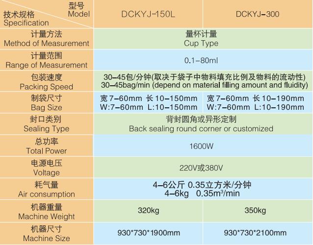 您的位置:首頁 > 產(chǎn)品展示 > 顆粒自動(dòng)包裝機(jī) > DCKYJ-150L/180L 背封單列圓角顆粒包裝機(jī)技術(shù)參數(shù):